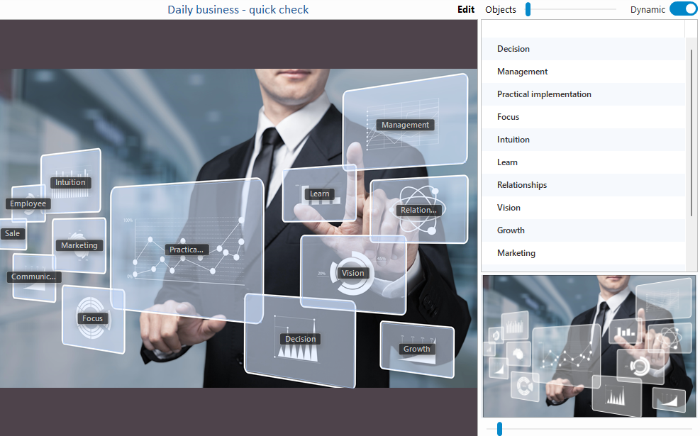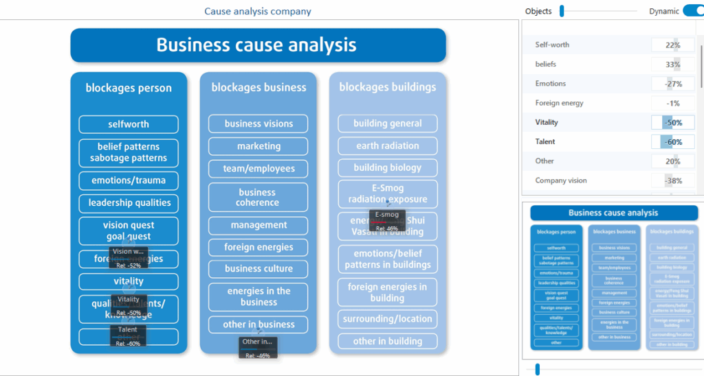 ビジネスに特化したモジュールです。ビジネスの成長の課題となっている原因を、建物・場、CEO、会社といった3つのカテゴリーに分け、どこにどのようなテーマがあるのか分析し調整していきます。