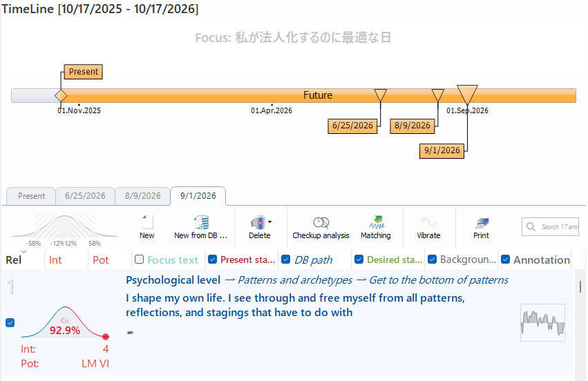 個人または事業において、最適なタイミングを分析したり、過去の出来事について原因となる年月日の分析や、特定の年月日について分析し、調整することができます。